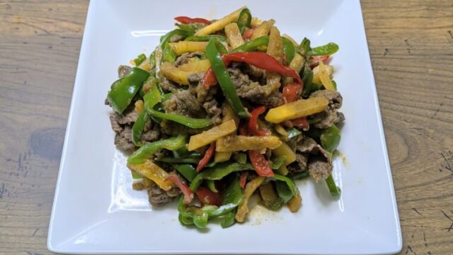 【柿とオイスターソースを使った】牛肉とピーマンのWかき炒め