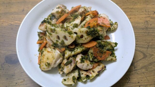 【ご飯に合う】鶏もも肉とれんこんのバターのり塩炒め