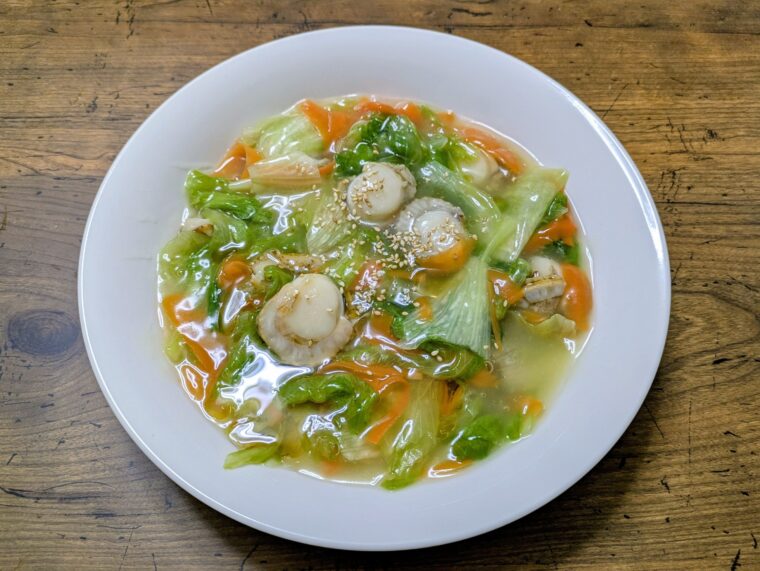 【レタス消費レシピ】ベビーホタテとレタスの中華あんかけ