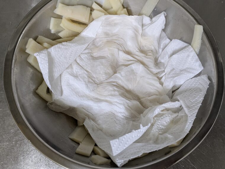 ②切った筍に塩を振って揉み込んで10分程おきます。