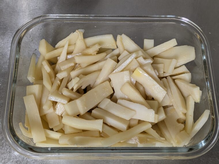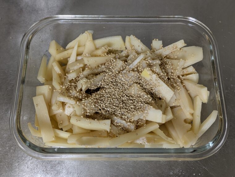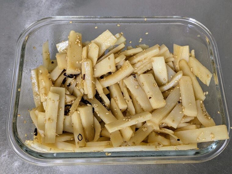 ⑤筍を先程の調味液に入れ全体が馴染むまで和えます。