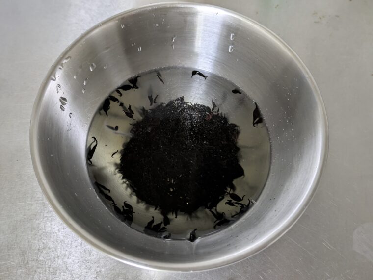 ⑤戻し終わったひじきは水で2~3回洗います。お湯が沸いたらひじきを入れ5分茹でます。