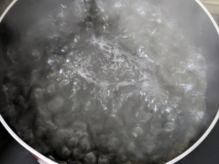 ②小鍋に水を8分目まで入れて中火で沸かします。