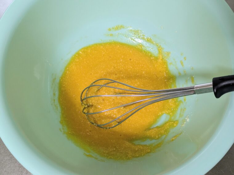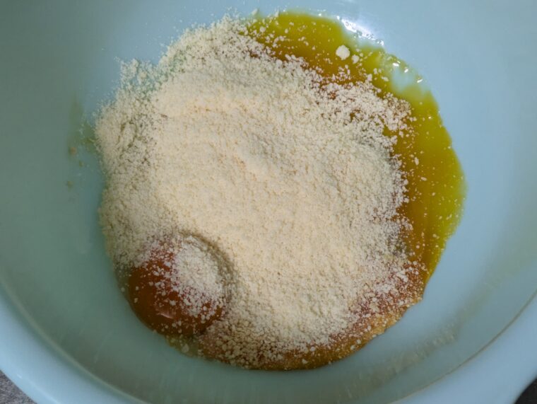 ③ボウルに卵黄とパルメザンチーズを入れて混ぜます。