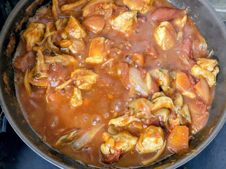 鶏むね肉を使ってもパサつかずジューシーな仕上がりになります。主食のご飯かパンとこの煮込みと後はちょっとしたサラダがあれば完璧なディナーの完成です。