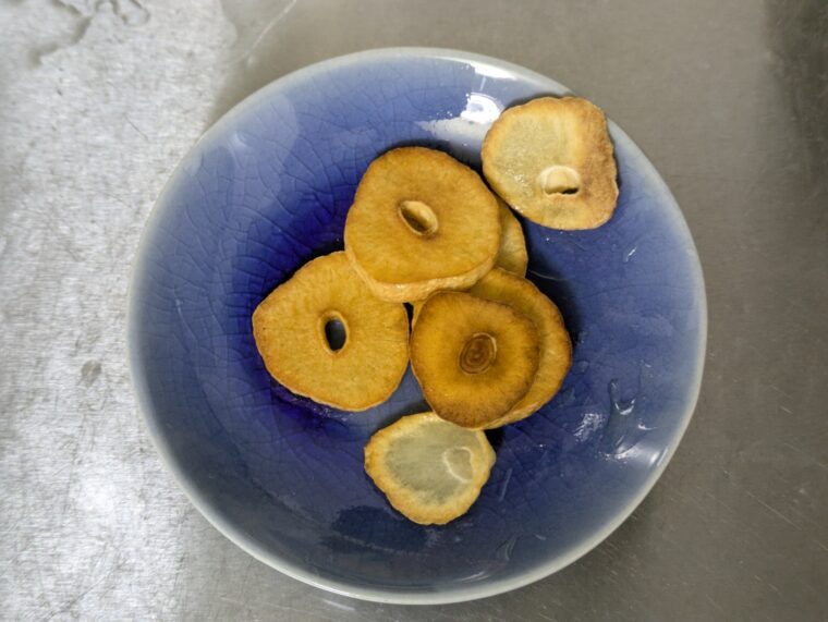 ④きつね色になったら小皿へ引き上げます。