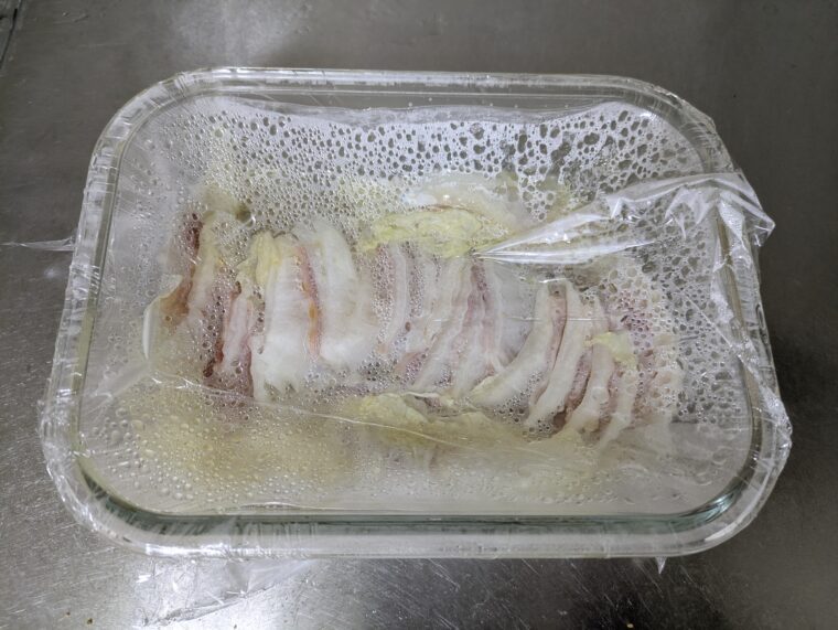 【レンジで簡単】白菜とベーコンのミルフィーユ煮