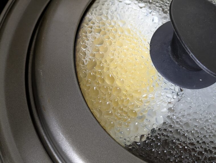 ⑩卵液はお湯が沸騰したら弱火にして7分加熱します。