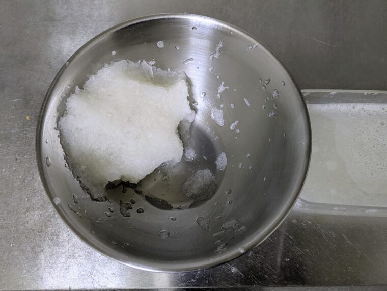 ④その間にピーラーで大根の皮をむいてすりおろし器ですりおろします。