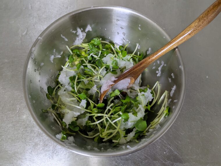 残った大根の絞り汁は肉を漬け込むと酵素の力で肉質が柔らかくなるので捨てずに有効活用できます。