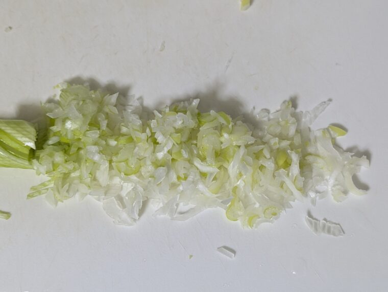 ③先程残った緑の部位と残りの白ねぎは荒みじんに切ります。