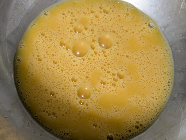 ⑦ボウルに卵を割り入れてよく溶きほぐします。