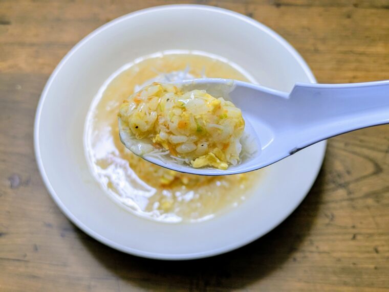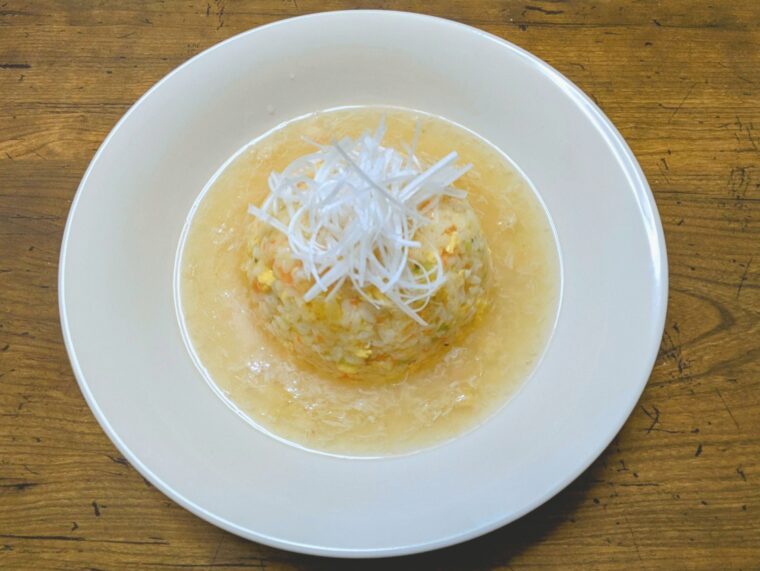 カニの旨味が効いたあんかけにシンプルなチャーハンがよく合います。白髪ねぎの食感も良いアクセントになっていて口に運ぶスプーンが止まりません。