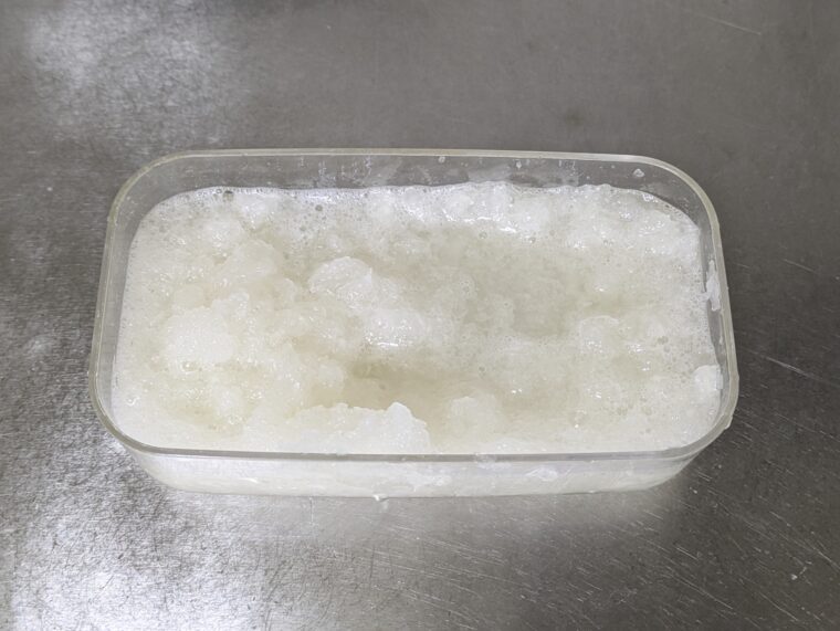 ⑤茹で終わたらザルで湯切りをして冷水にさらして冷やします。