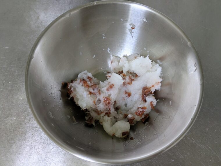 ⑦ボウルにすりおろした大根と刻んだ梅干しを入れてよく和えます。
