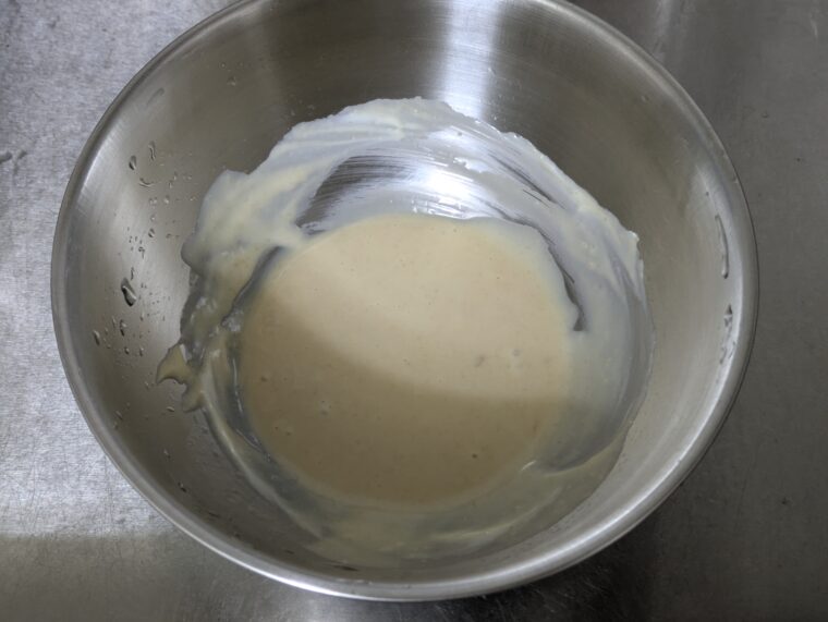 ④ボウルに白味噌・マヨネーズ・みりんを入れてよく混ぜます。