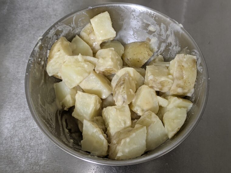 ⑥じゃが芋に味噌マヨを絡めます。