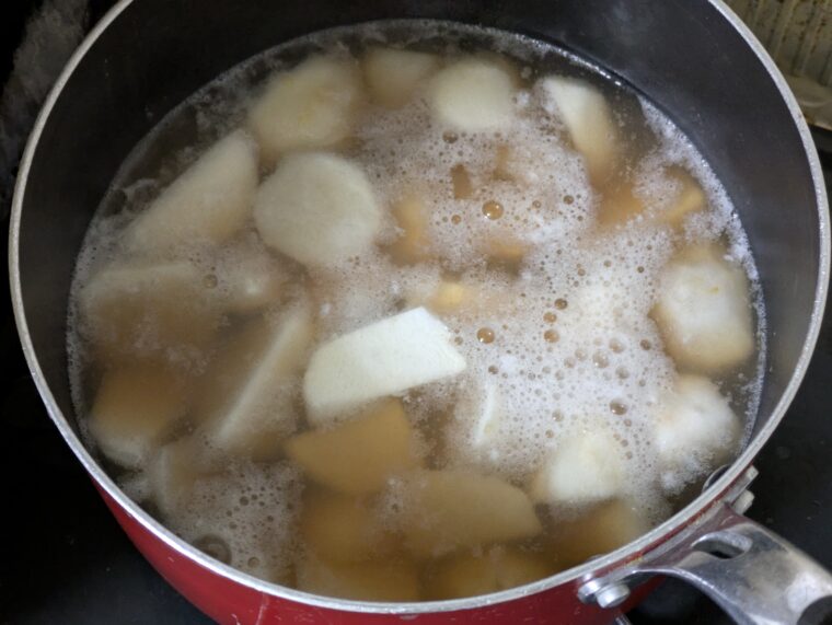 目を離した瞬間に吹きこぼれますので火加減を調整しながら気を付けて煮てください