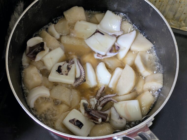 イカは煮すぎると食感が硬くなるのでサッと煮ます。