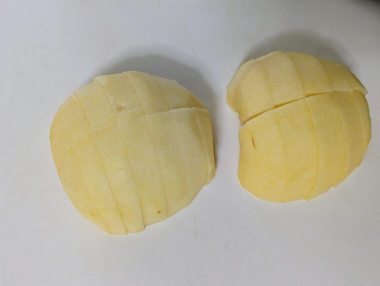 ⑤その間にりんごの皮をむいて4等分に切って芯を取り除きます。
