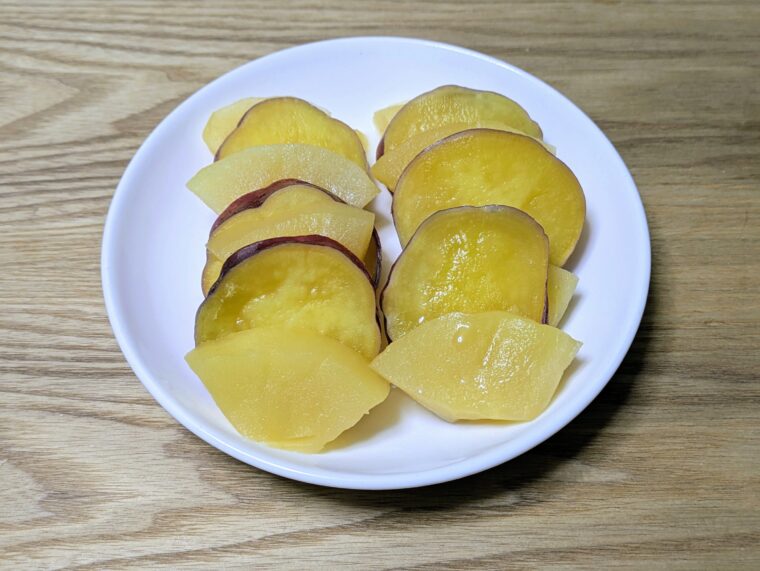 さつま芋は長細い物を選んで使うと煮崩れしにくく均等に柔らかくなります。