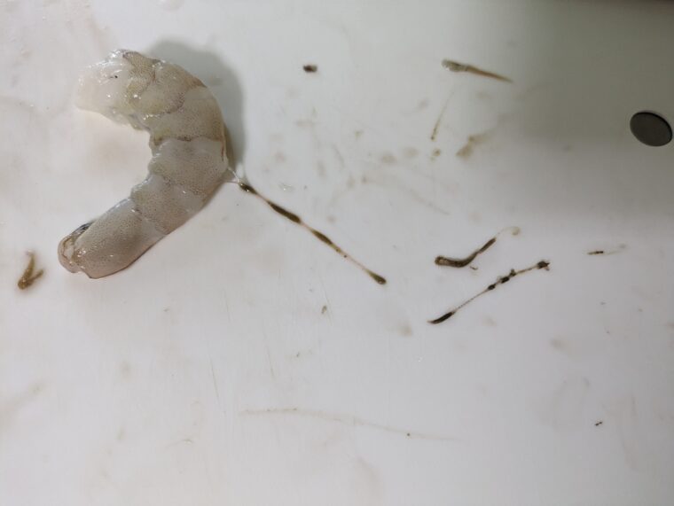 ⑦飾り用の海老は殻を剥いて背ワタを爪楊枝で取り除きます。