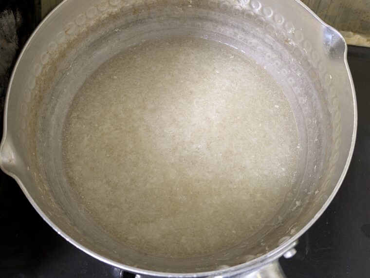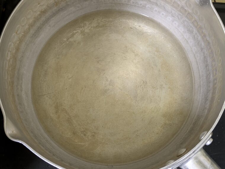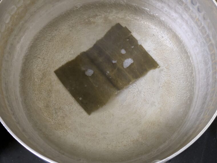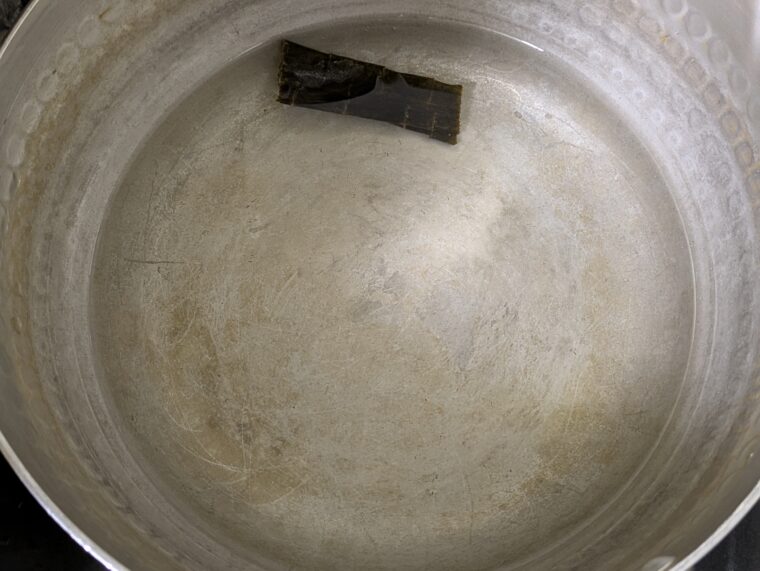 ②鍋にだし昆布と水350ccを入れて弱火にかけます。
