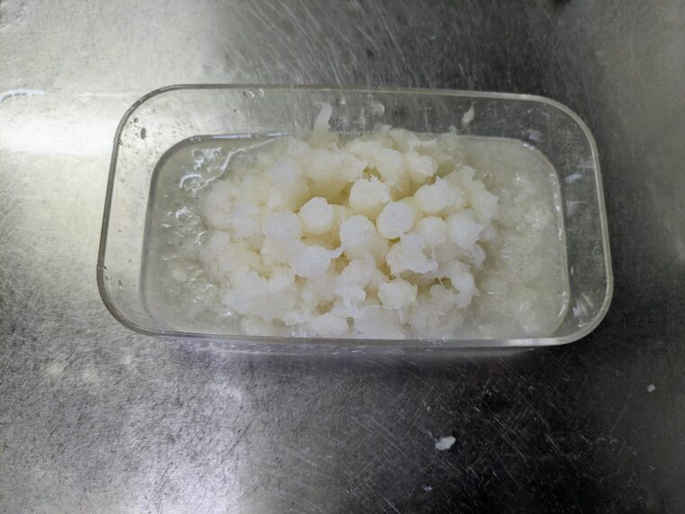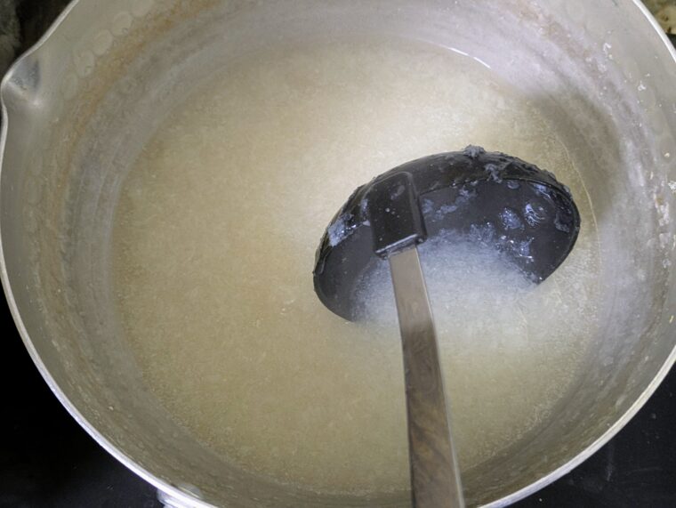 ⑩このくらい半透明になったら白だしを加え混ぜてから味見します。薄ければ白だしを追加してください。